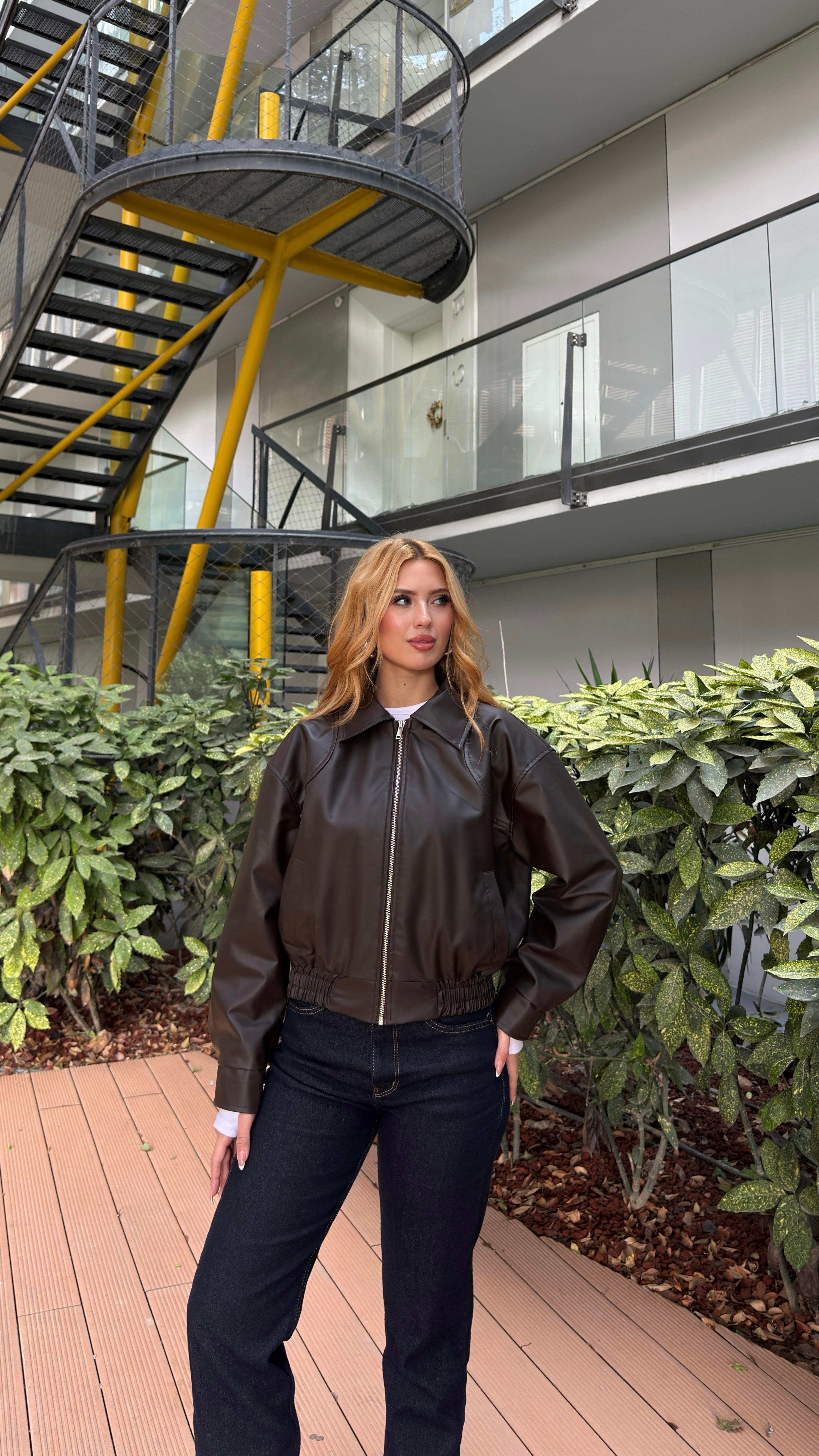 Model Ölçüleri: Boy: 1.70 , Kilo: 50 Göğüs: 85 , Bel: 65 , Kalça: 90 Modelin üzerindeki S/36 bedendir. Ürün Özellikleri (S Beden için); Boy: 50 cm. Göğüs: 150 cm. Kumaş: Suni Deri (İçi Astarlı)