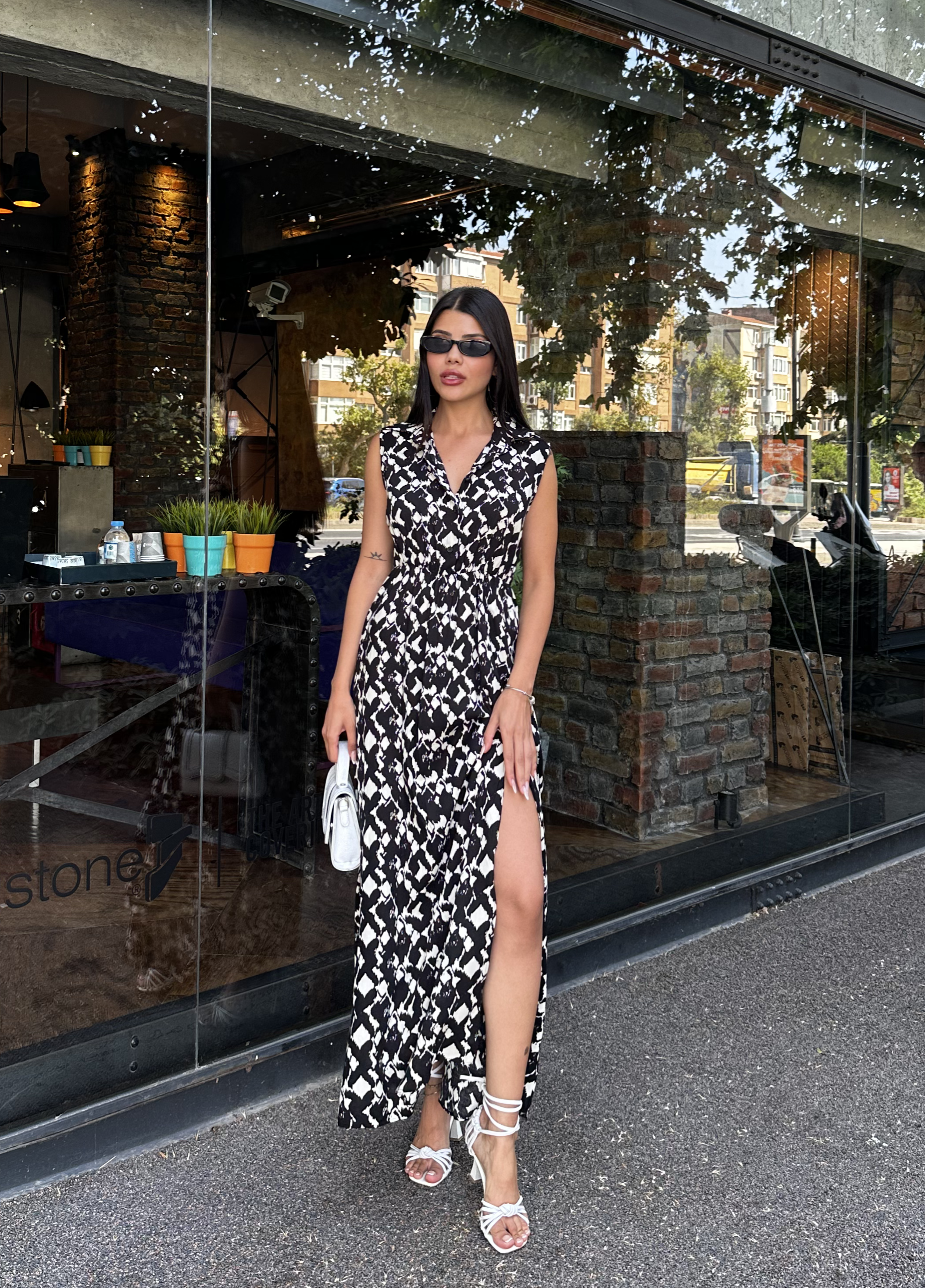 Modelin üzerindeki S beden. Ürün Özellikleri (S Beden için): Boy: 128 cm. Göğüs: 92 cm. Bel: 64 cm. Basen: 118 cm. Kumaş: Viskon (B3/1)