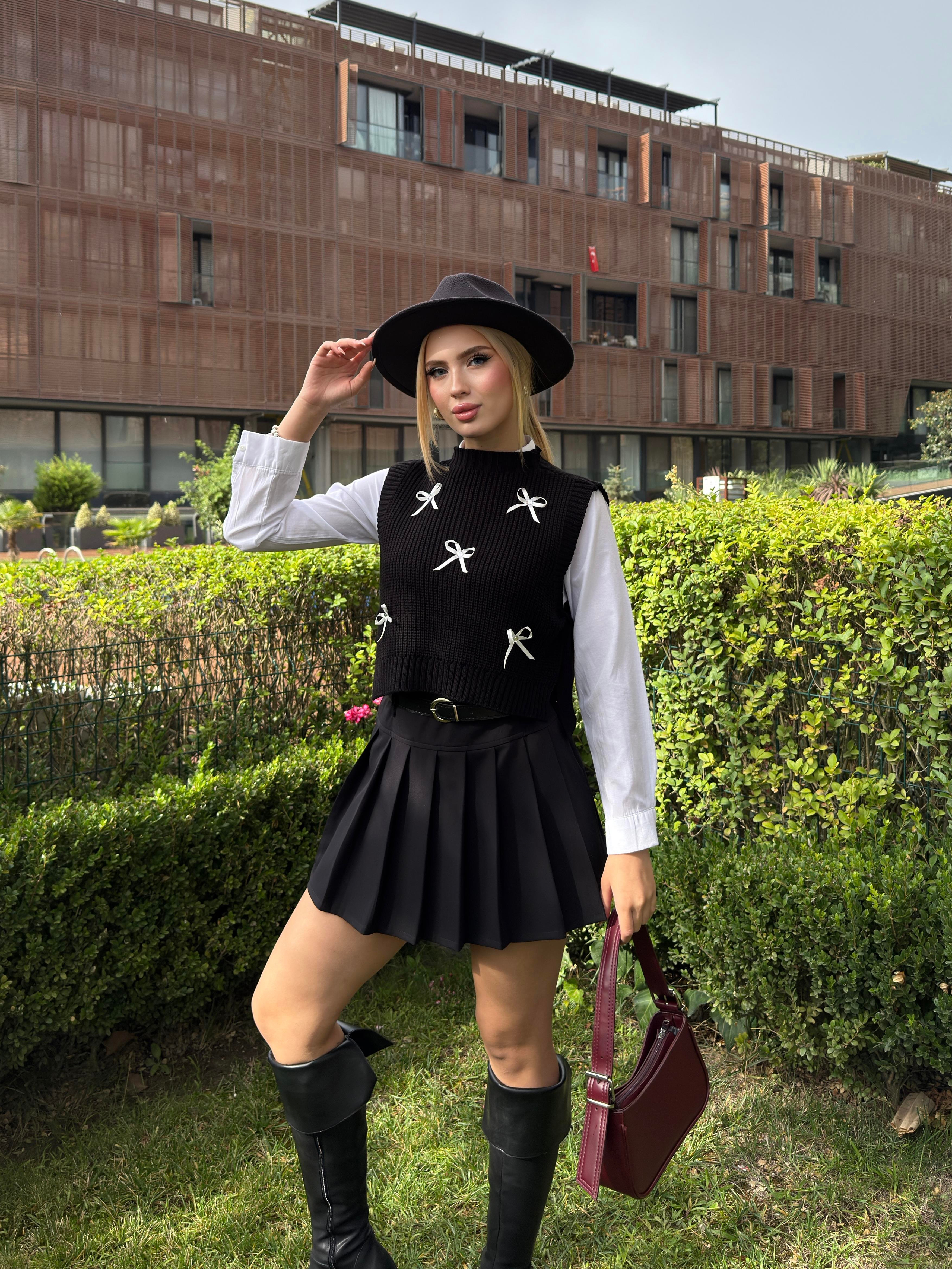 Fiyonk Detay Triko Süveter Siyah (ZND-0282-D)