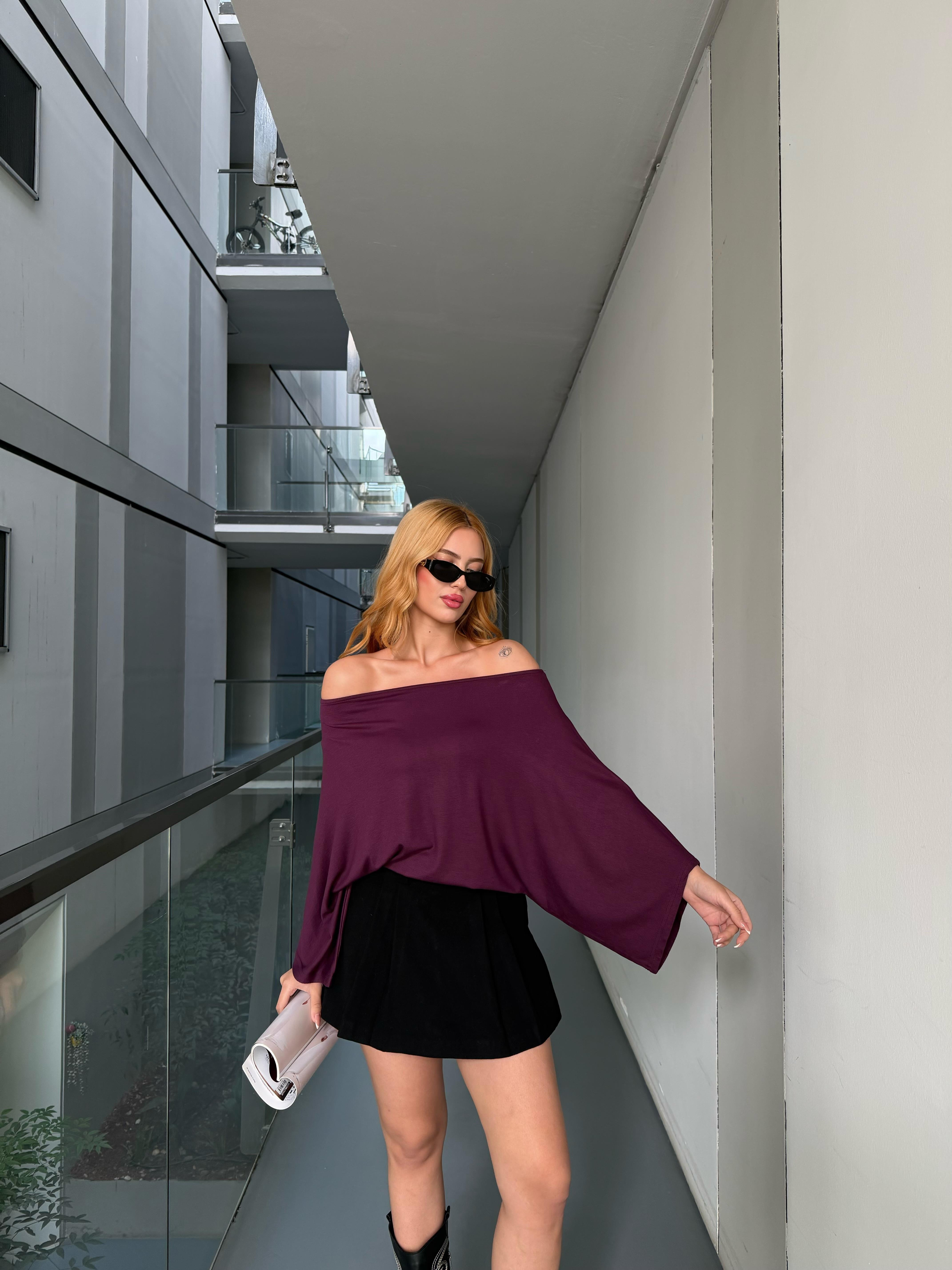 Kayık Yaka Yarasa Kol Bluz Mürdüm