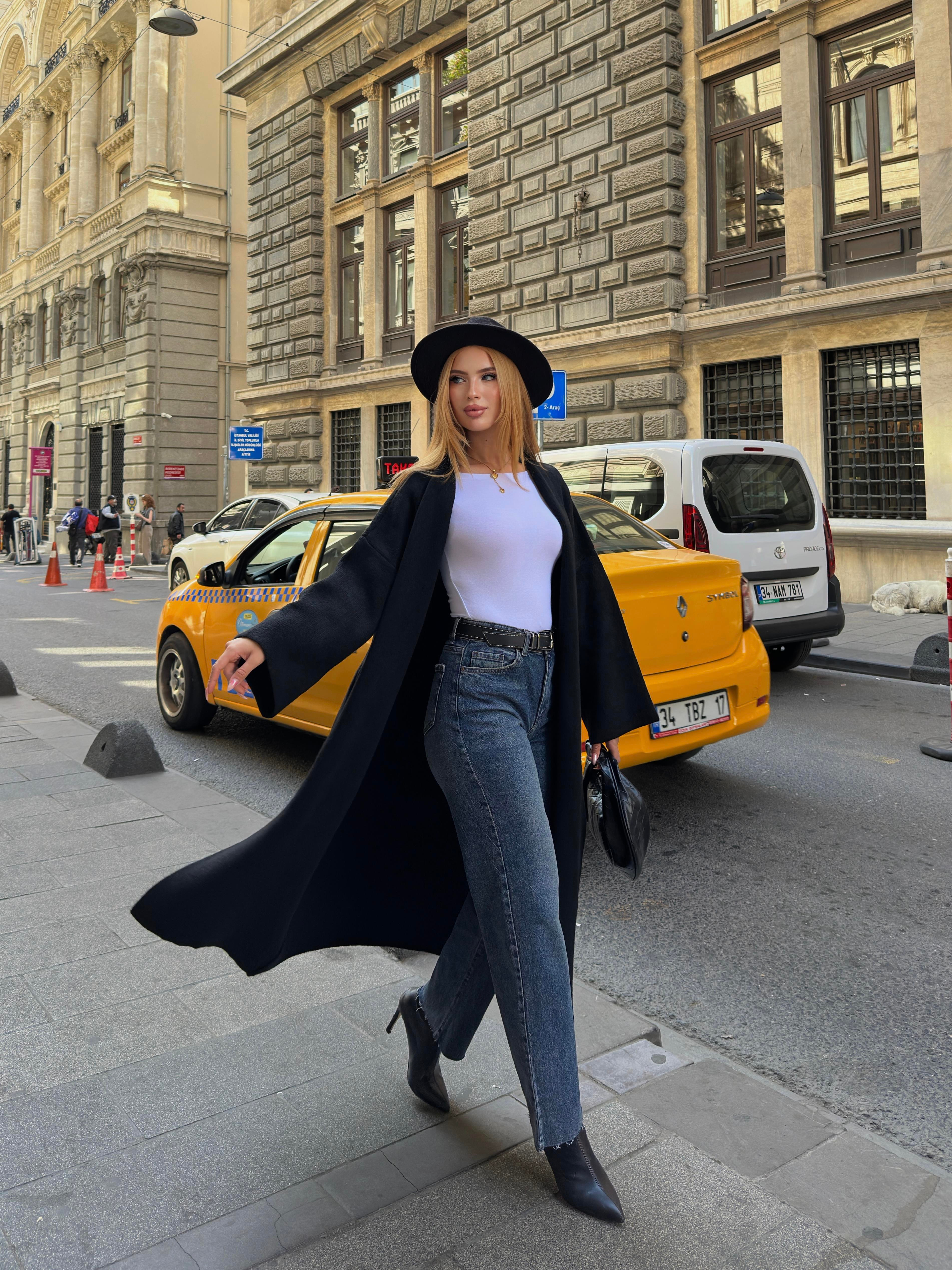 Modelin üzerindeki Standart beden. Ürün Özellikleri (Standart Beden için); Boy: 120 cm. Bel: 136 cm. Göğüs: 140 cm. Kumaş: Triko (A91828-S)