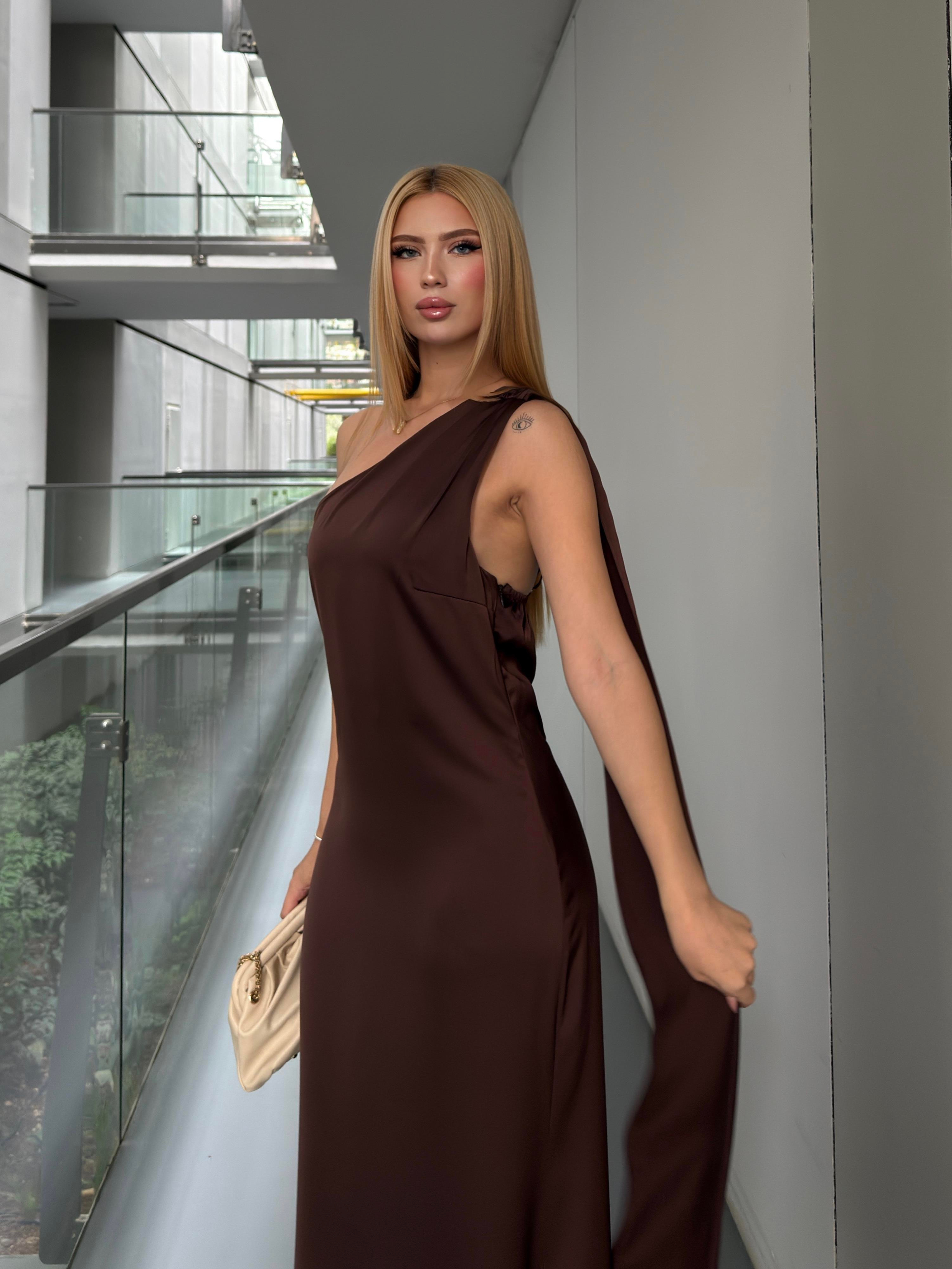 Modelin üzerindeki S beden. Ürün Özellikleri (S Beden için): Boy: 148 cm. Göğüs: 72 cm. Bel: 68 cm. Basen: 88 cm. Kumaş: Saten (221757)