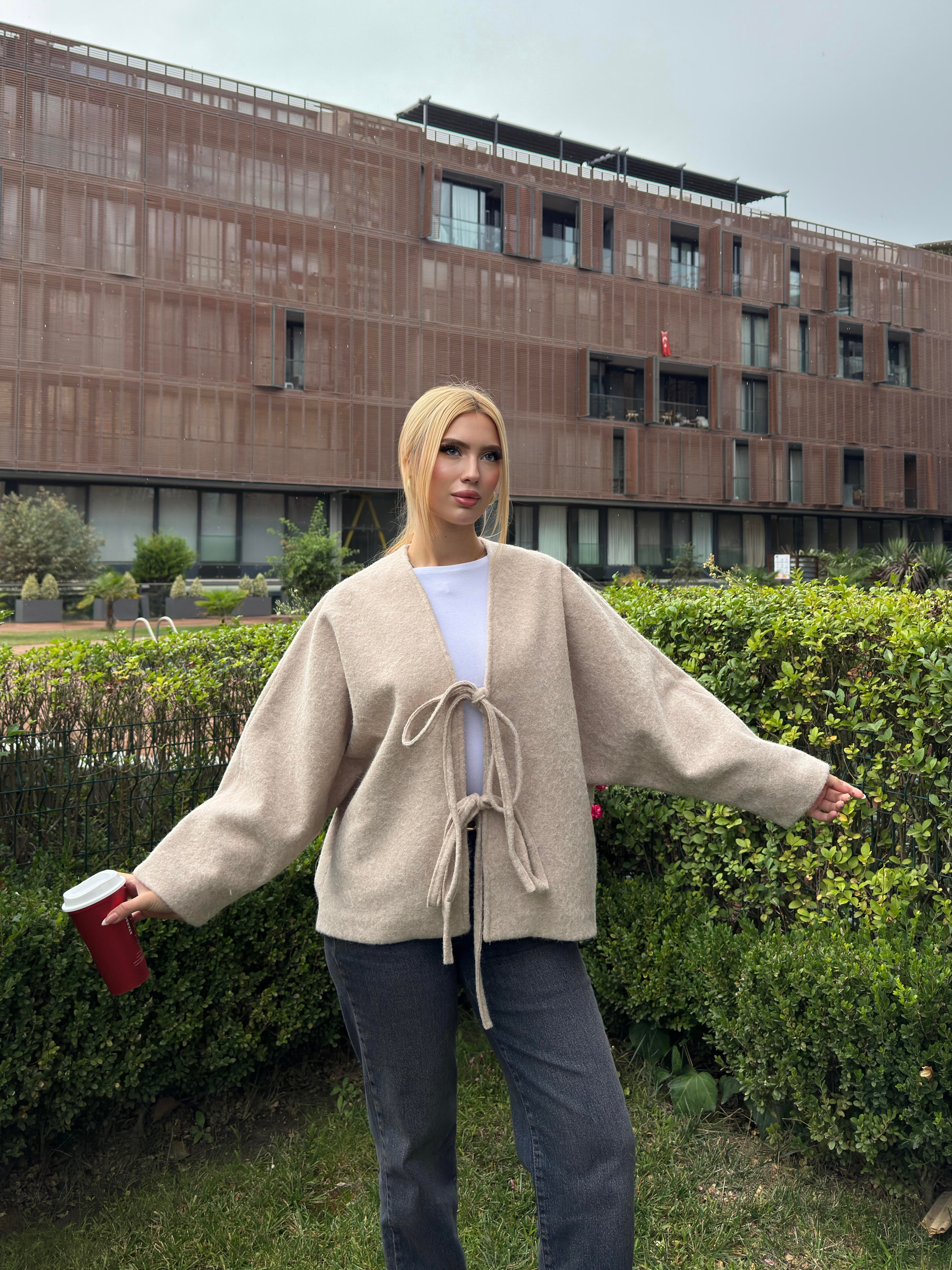 Zr Bağcıklı Kaşe Ceket Bej (CDV-9887-P)