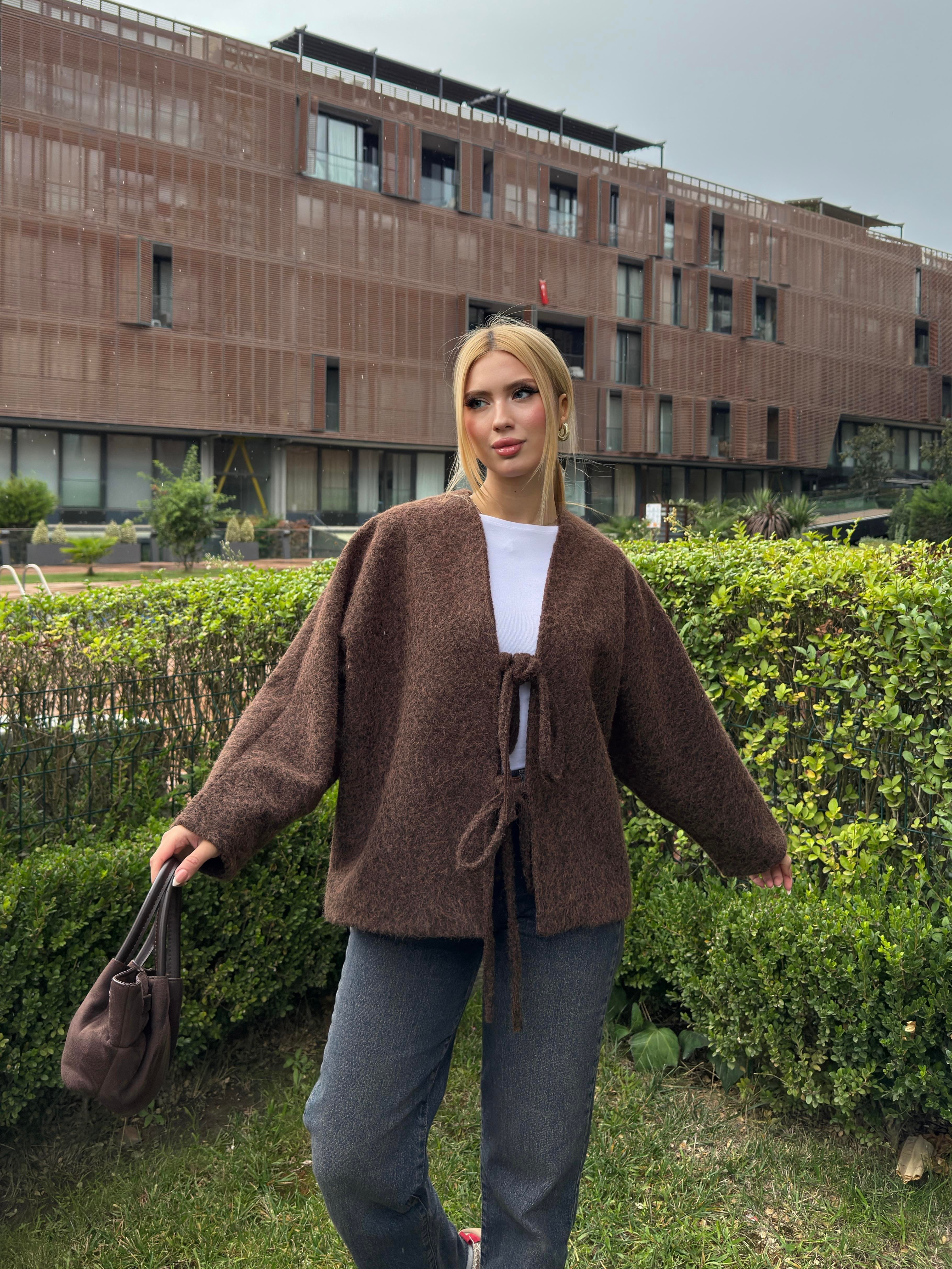 Modelin üzerindeki S beden. Ürün Özellikleri (S Beden için); Boy: 60 cm. Göğüs: 124 cm. Kumaş:Kaşe (0527